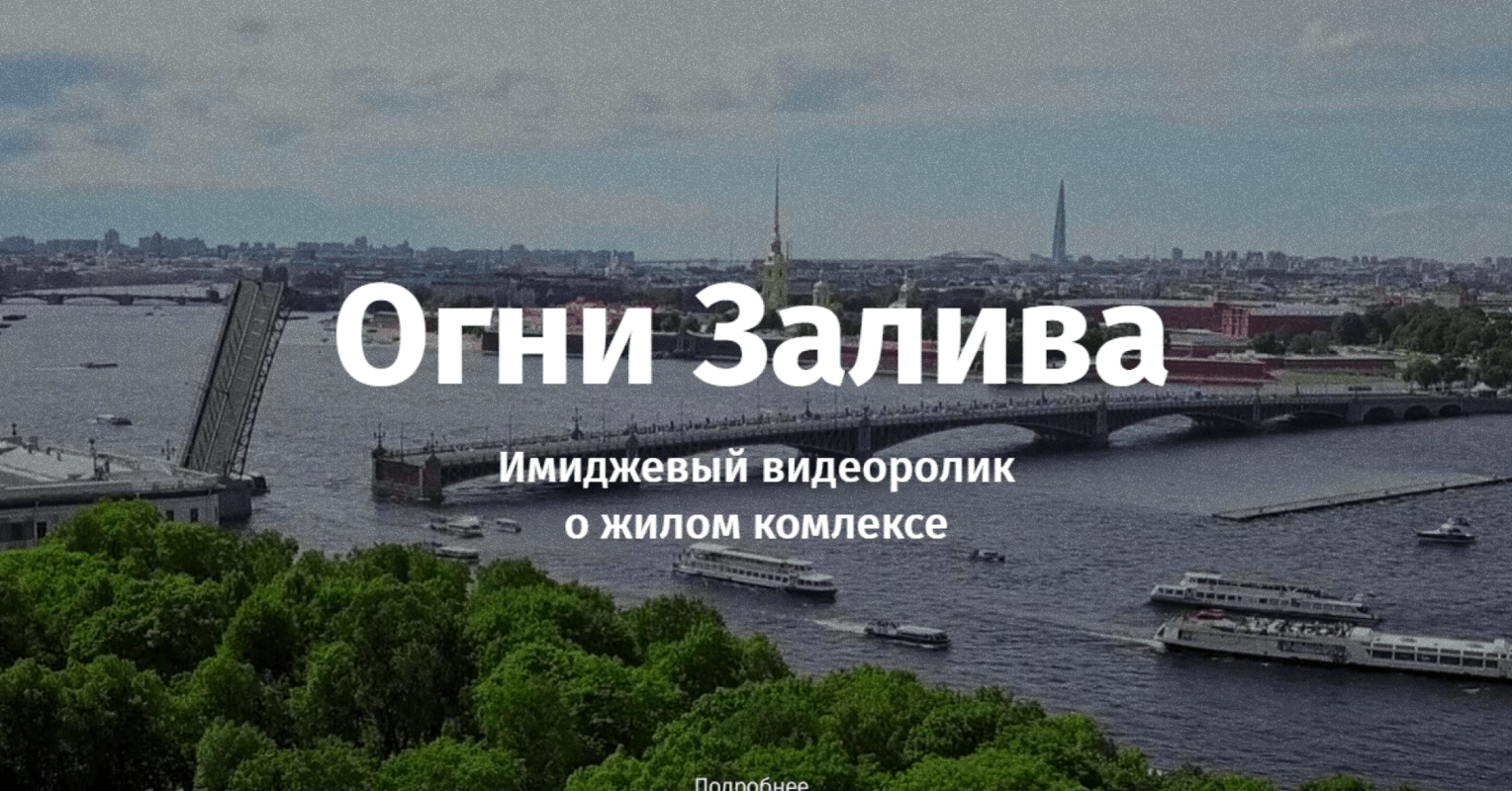 В этом проекте провели съемки имиджевого ролика для застройщика БФА-Девелопмент. Основной целью было показать эмоциональные преимущества жизни в ЖК «Огни Залива».