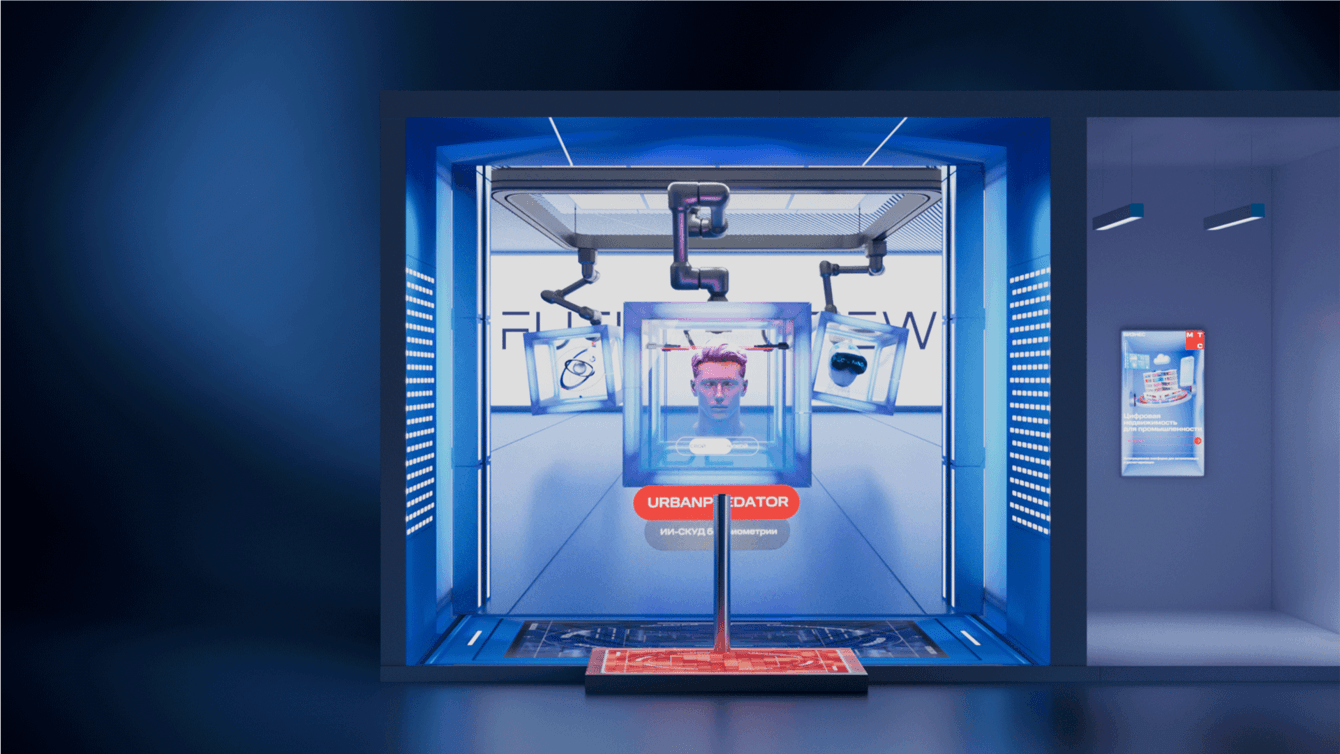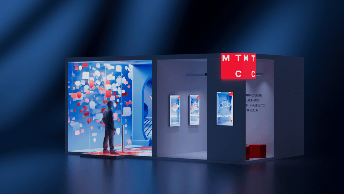 Со студией Akademia нам удалось создать эффектную и динамичную naked eye инсталляцию на довольно ограниченном пространстве. Иммерсивная комната привлекла посетителей выставки и позволила им погрузиться в виртуальный мир МТС и познакомиться с ключевыми продуктами экосистемы.