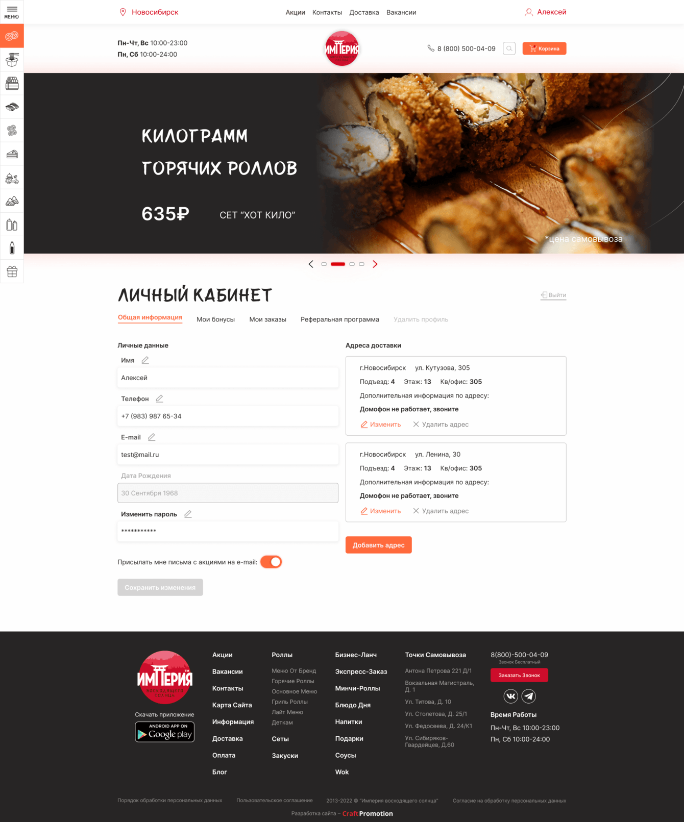 Отдельно выделяем работу новых бонусной и реферальной программ, которые выгодно выделяют сайт среди конкурентов и, однозначно, нравятся клиентам, поскольку позволяют экономить на покупках.
