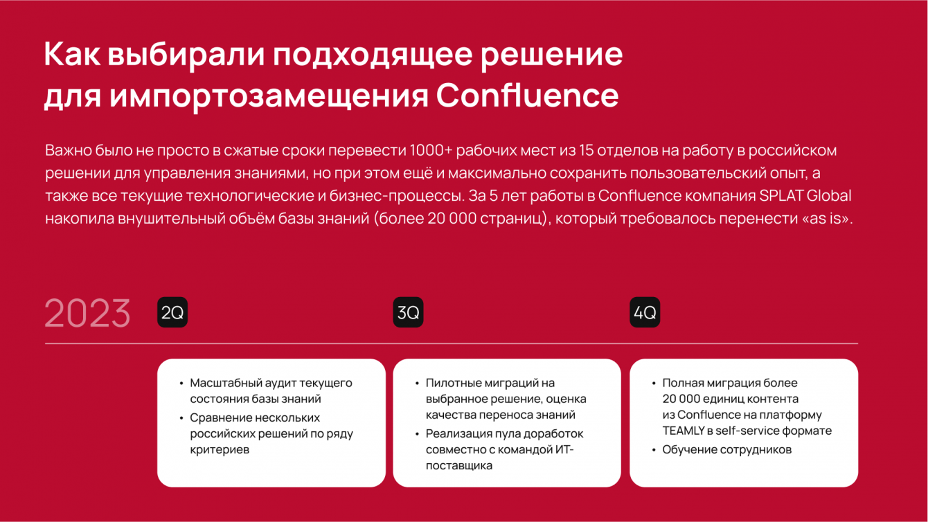 ✅ Выполнили полное импортозамещение Confluence Server и провели миграцию знаний на российское решение TEAMLY для 1000+ сотрудников.