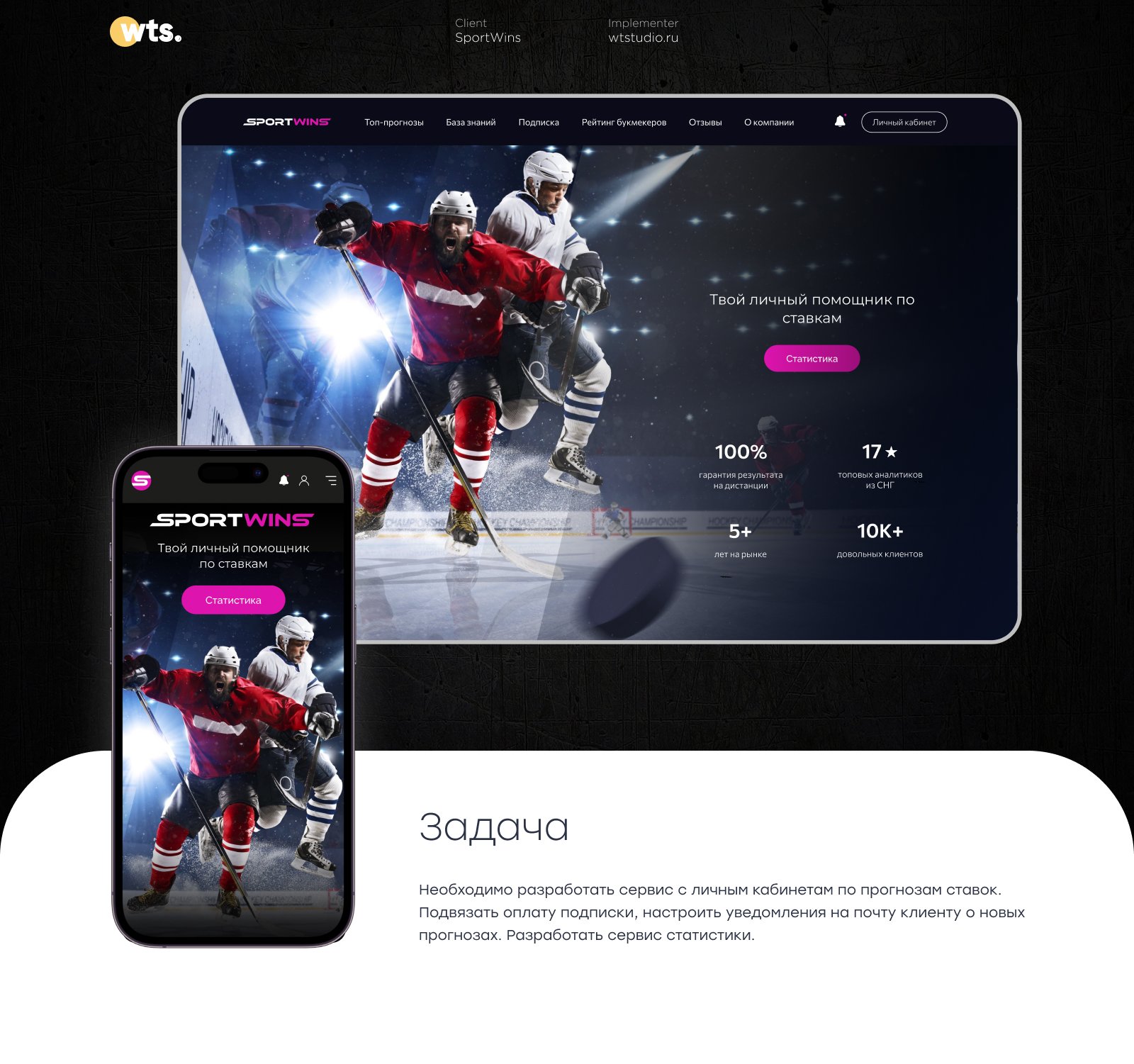 Необходимо разработать сервис с личным кабинетам по прогнозам ставок. Подвязать оплату подписки, настроить уведомления на почту клиенту о новых прогнозах. Разработать сервис статистики.