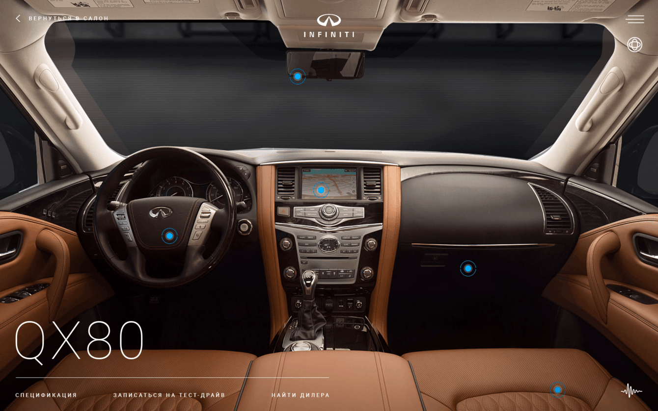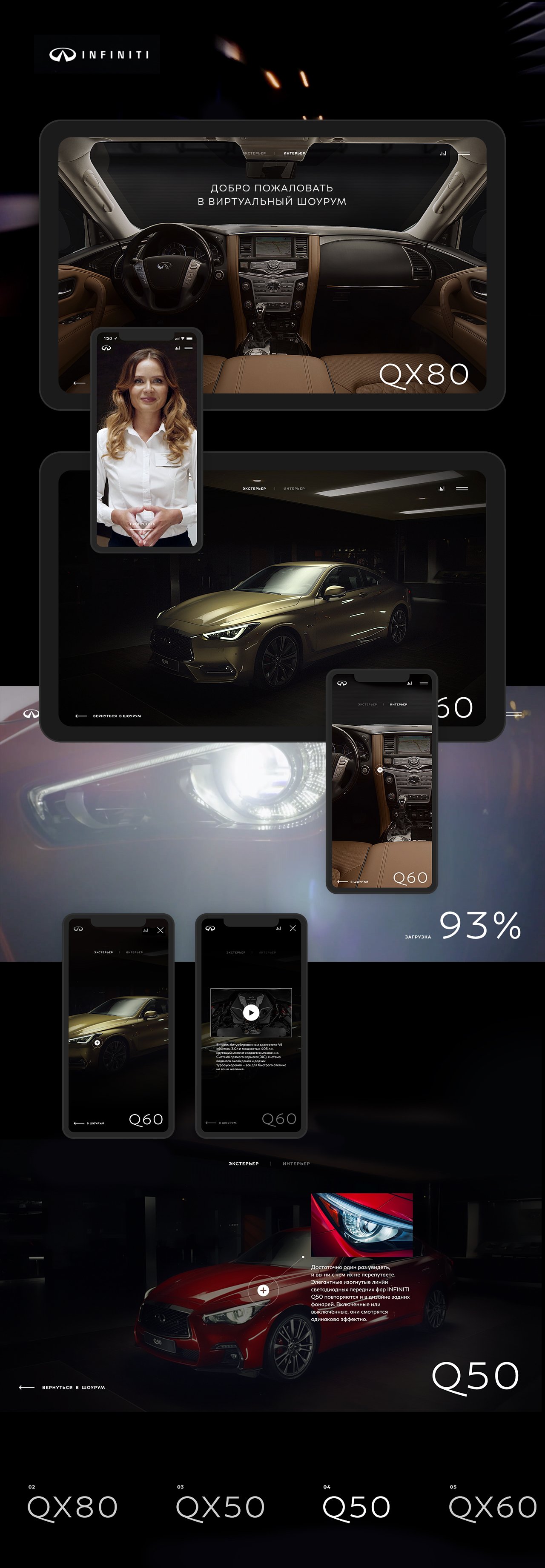 Клиент хотел создать онлайн-шоурум бренда Infiniti для представления своих премиальных автомобилей в интернете.