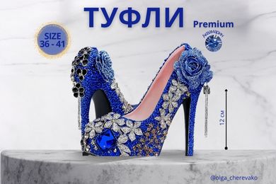 Добавили фон, поверхность на которой стоят туфли, добавили текст, стрелки с указанием размера, выделили ключевой материал изготовления, добавили плашку с размером которую украсили золотой рамкой