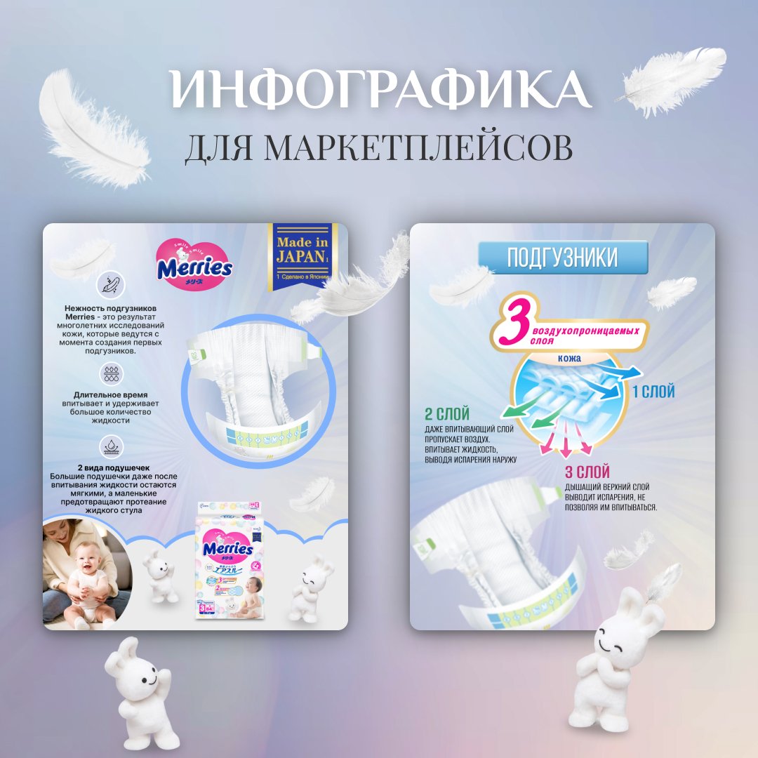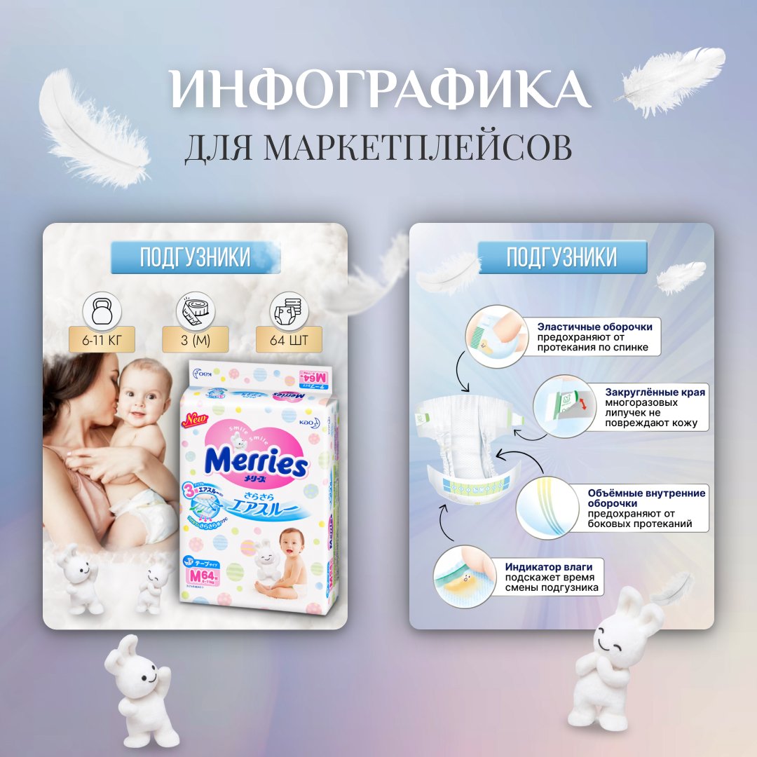 С помощь инфографики мне удалось передать легкость и мягкость подгузников (что очень важно для мам, которые и являются основным сегментом ЦА).