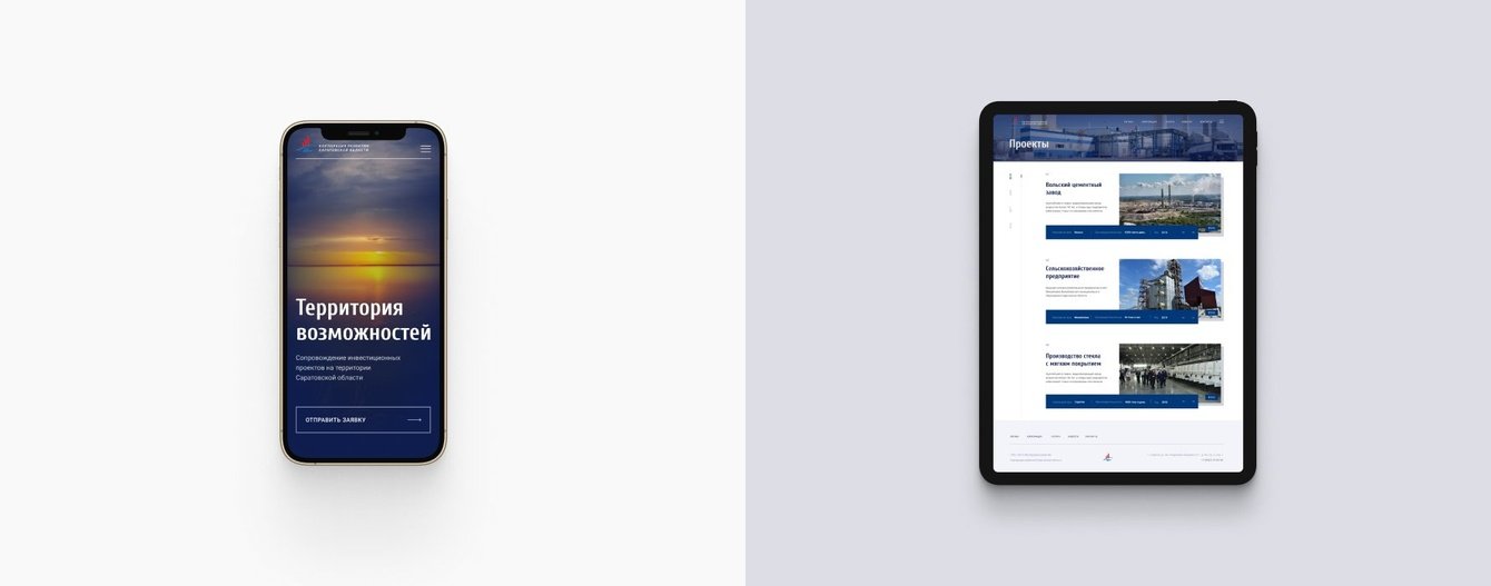 На главной странице есть блоки о компании, ее услугах и новостях. Отдельный раздел посвящён презентации инвестиционного потенциала Саратовской области. В нём представлена информация о налоговых льготах, доступных ресурсах в области, преимуществах расположения и экономической привлекательности региона.