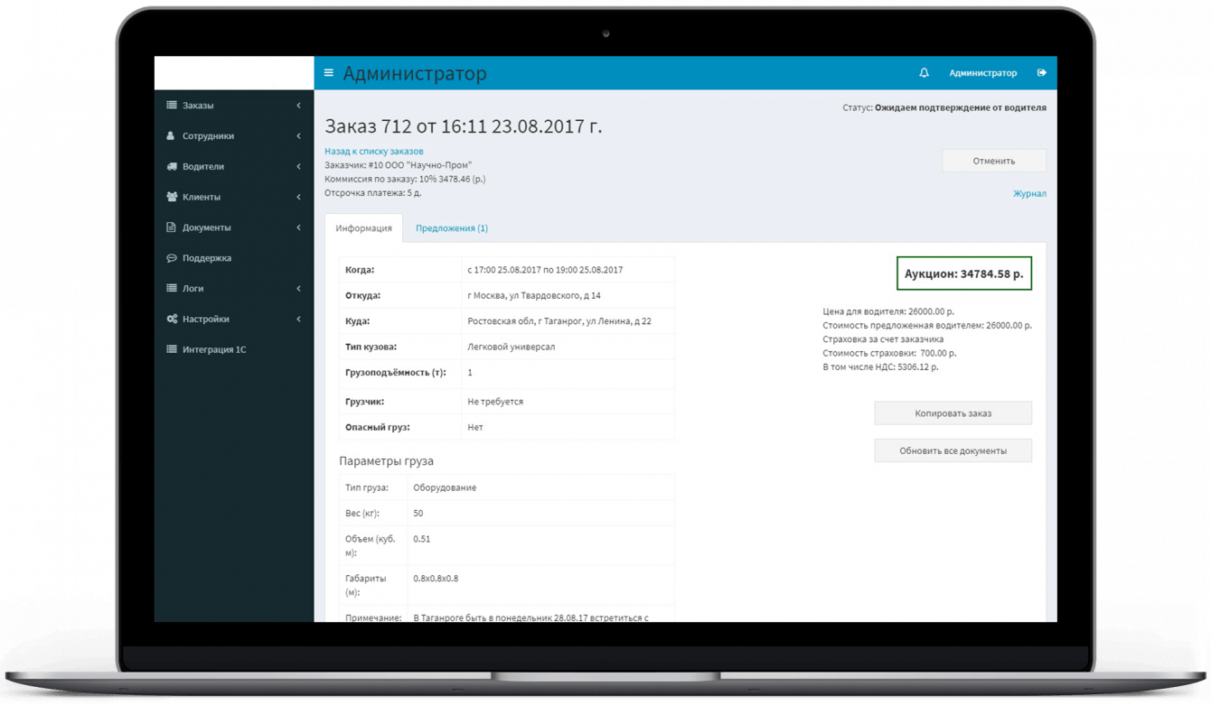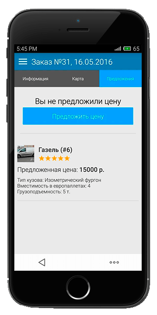 5) Автоматические sms и push-уведомления грузоперевозчикам