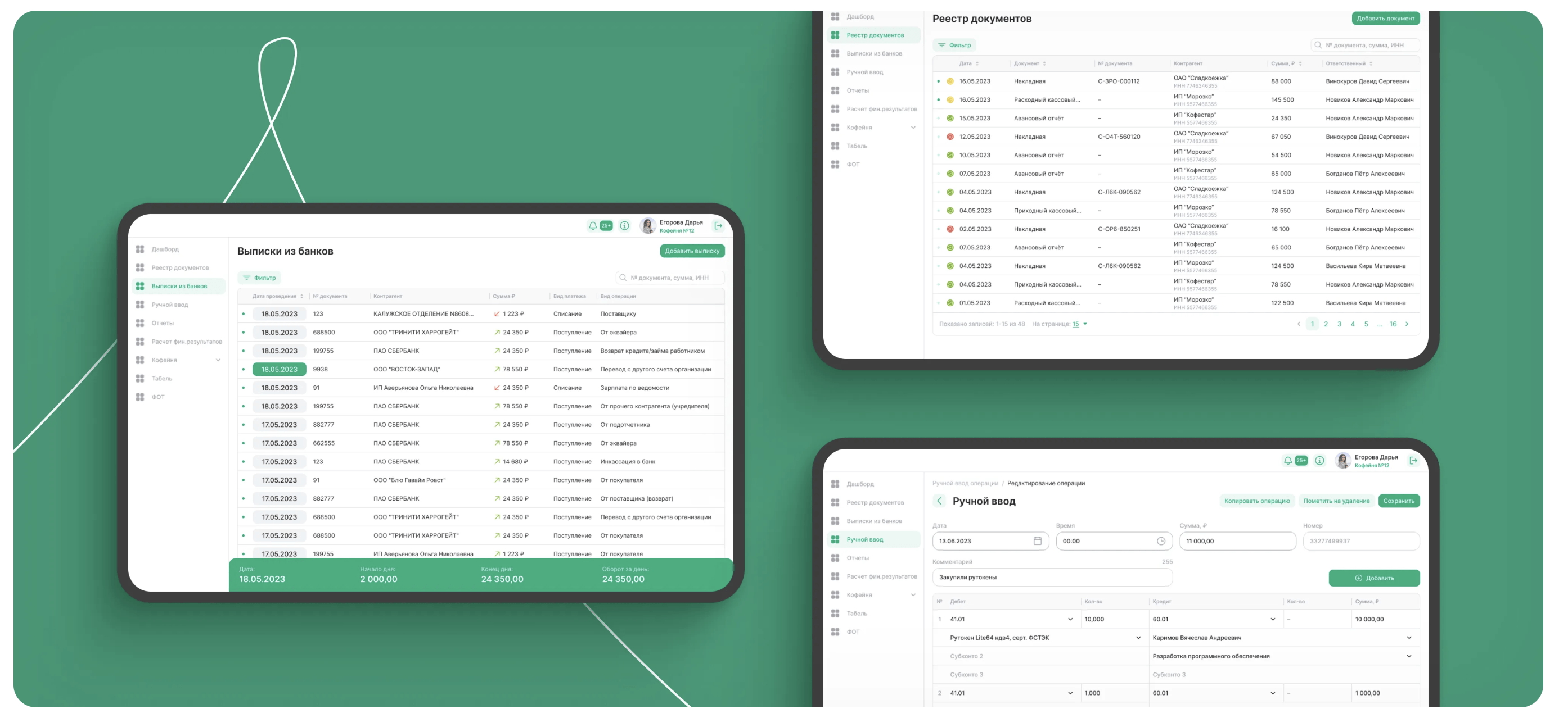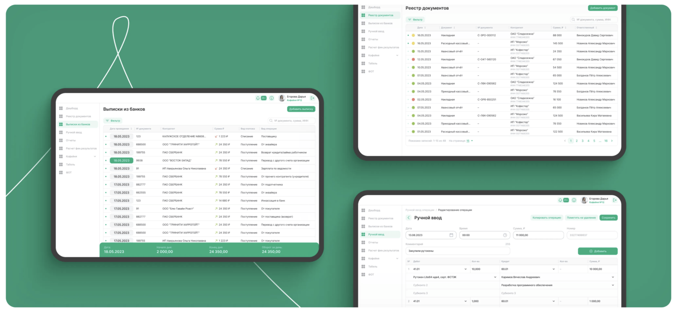 Перед нами стояла задача разработать корпоративную информационную систему для управления спотами с целью обмена информацией между управляющими и бариста. А также автоматизировать процессы генерации валидированный финансовых показателей и формирования финансовой отчетности как в рамках одного спота, так и по всем спотам для головного офиса.