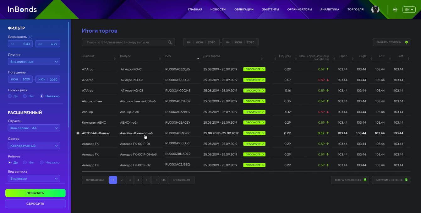 — Интеграция с сервисом damia.ru для получения финансовой информации по эмитентам.