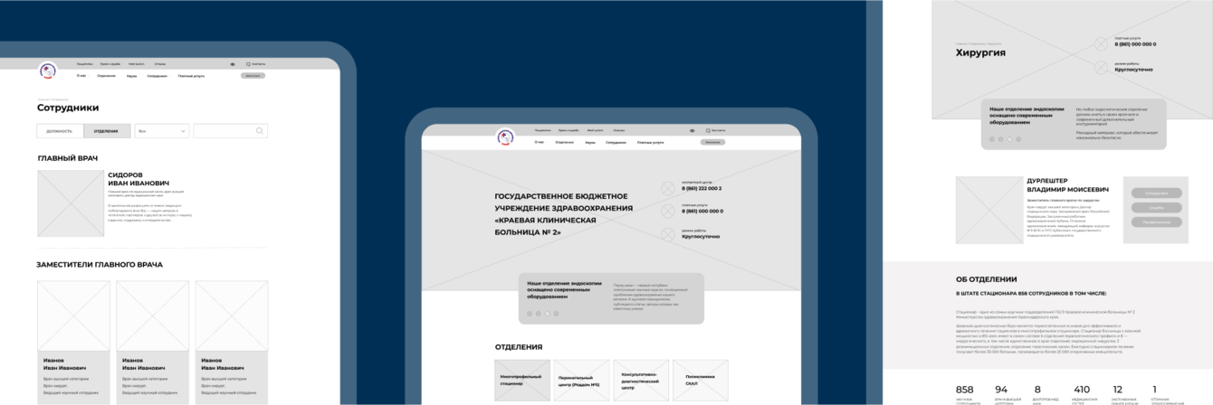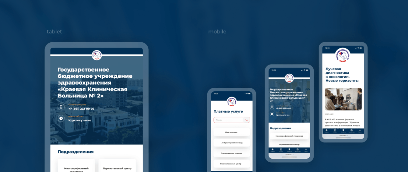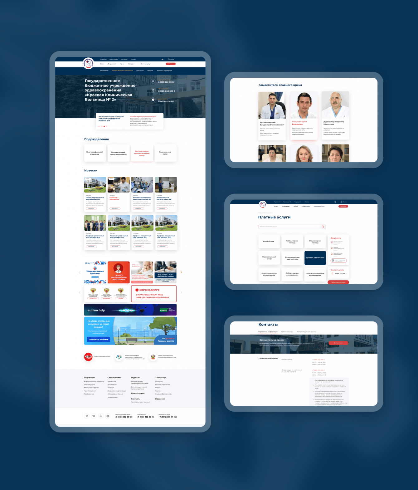 Дизайн сайта "Краевая клиническая больница № 2" выполнен в минималистичном стиле, который акцентирует внимание на ключевых элементах.