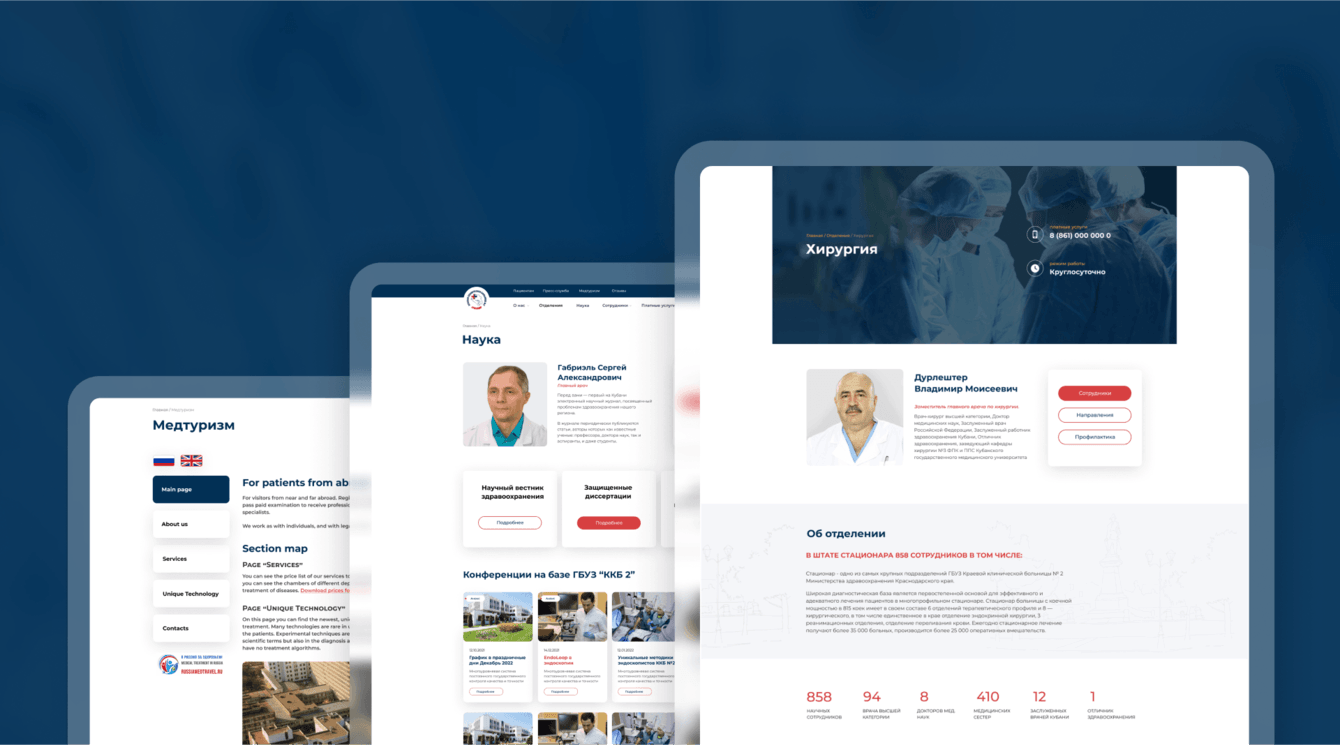 При разработке сайта для медицинского учреждения нужно учесть несколько особенностей. С одной стороны, мы думаем о том, как правильно подать контент, чтобы донести до пользователей информацию. С другой, сделать платформу интуитивно понятной для сотрудников.