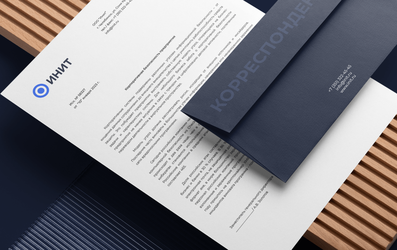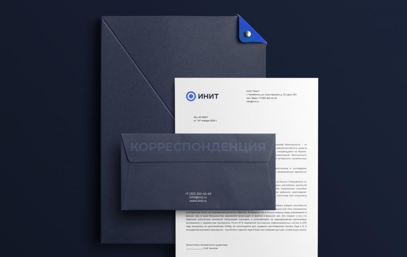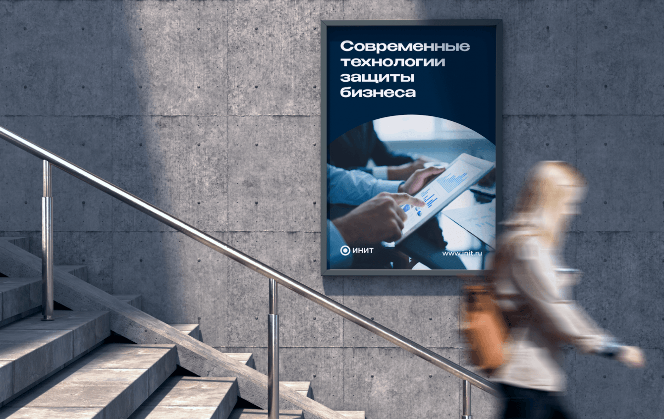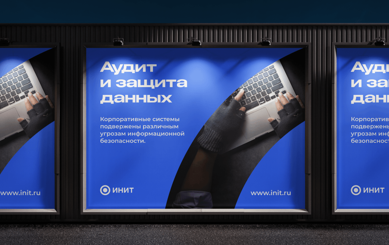 Инит - это компания в области защиты, осуществляющая комплексную безопасность бизнеса, она была основана в 2022 году и на сегодняшний день активно заходит на профессиональный рынок. Перед нами стояла задача полностью создать бренд, его философию, визуальную систему, носители, дизайн сайта и коммуникационные материалы для социальных сетей.
