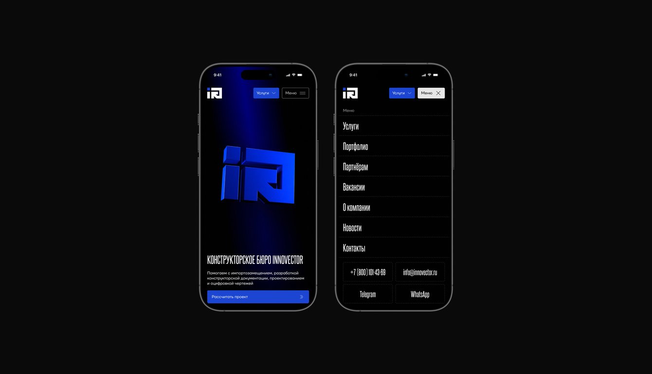 Цель редизайна сайта INNOVECTOR — сформировать образ высокотехнологичного конструкторского бюро и усилить доверие со стороны промышленных заказчиков. Мы выстроили чёткую визуальную и UX-логику, чтобы кейсы, компетенции и услуги были максимально понятны и убедительны.