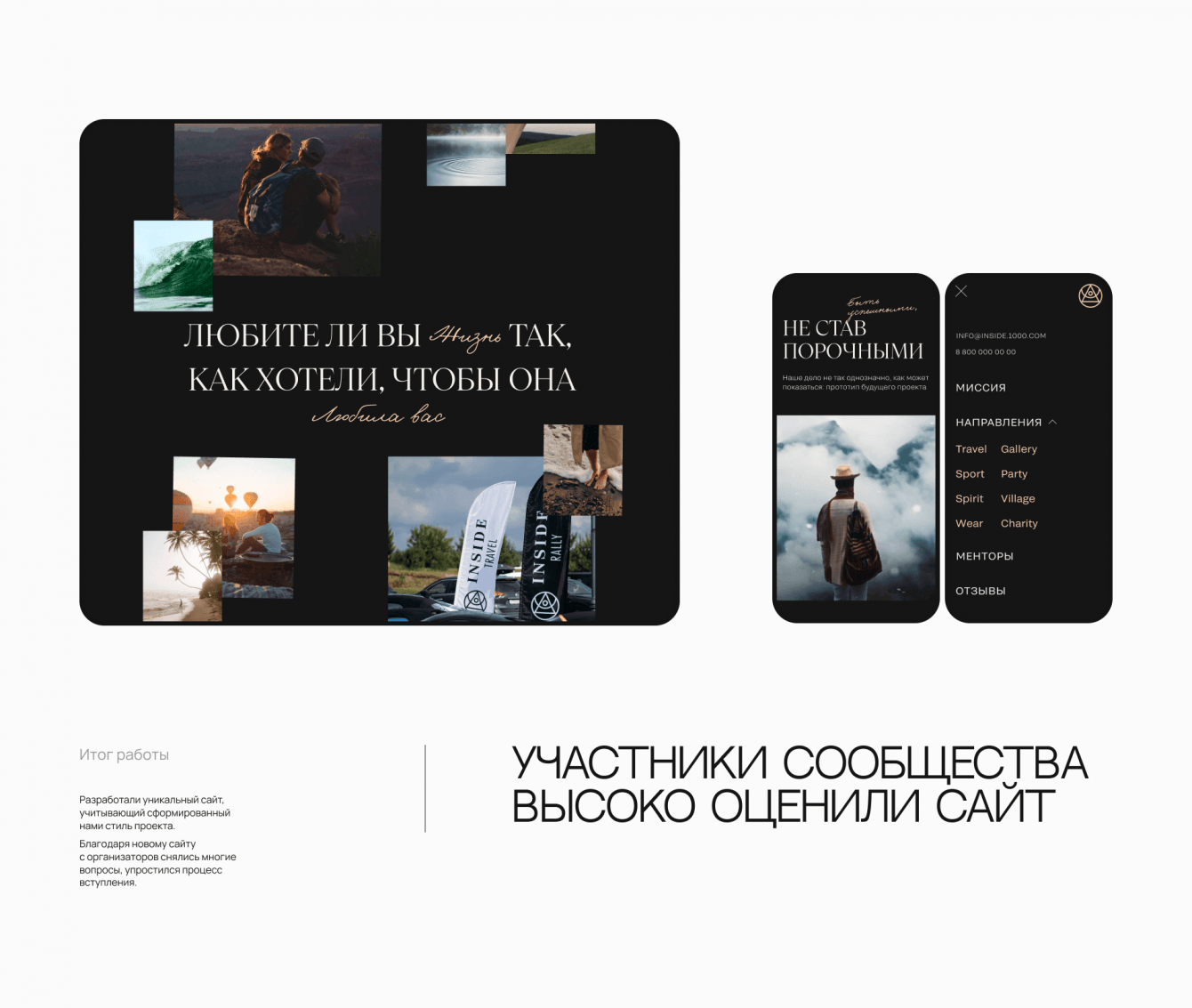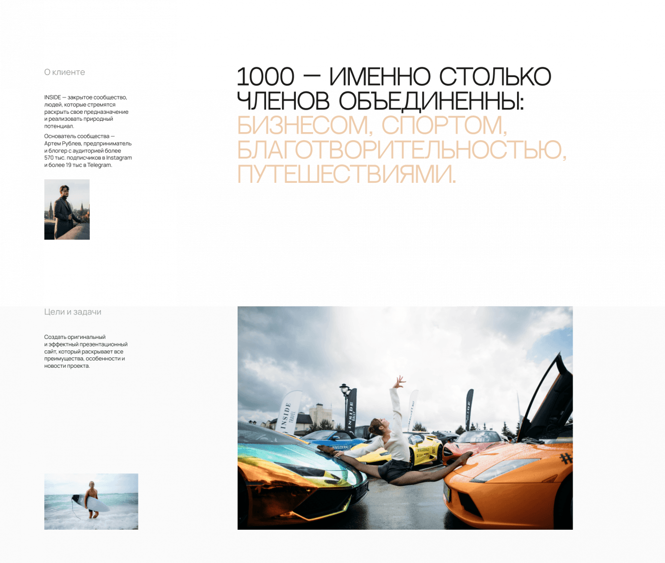 INSIDE — закрытое сообщество, людей, которые стремятся раскрыть свое предназначение и реализовать природный потенциал. 1000 — именно столько членов сообщества.