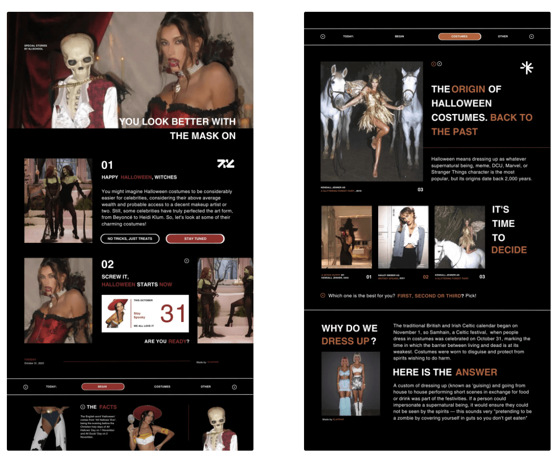Эти сторис были созданы, чтобы отпраздновать Хэллоуин, вовлечь сообщество школы NJ и сделать контент актуальным и сезонным.