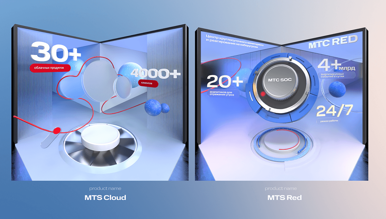 Задача проекта — привлечь внимание к стенду и ярко заявить о ребрединге, а также представить В2В-продукты МТС как готовые решения для бизнеса. Важно было представить продукты наглядно, понятно и унифицированно – как составляющие одной экосистемы.