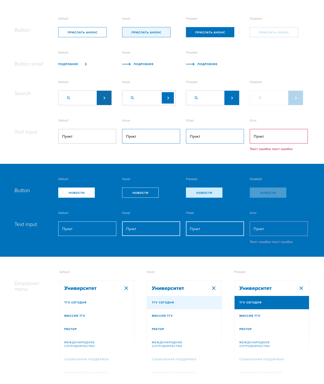 Работа над проектом велась поэтапно — поиск референсов, анализ текущего сайта и проектирование его новой структуры, написание технического задания, а также прототипирование выделенных на этапе анализа уникальных страниц. Документацию и прототипы передавали на утверждение заказчику. На протяжении утверждения приходили правки, которые вносились оперативно.