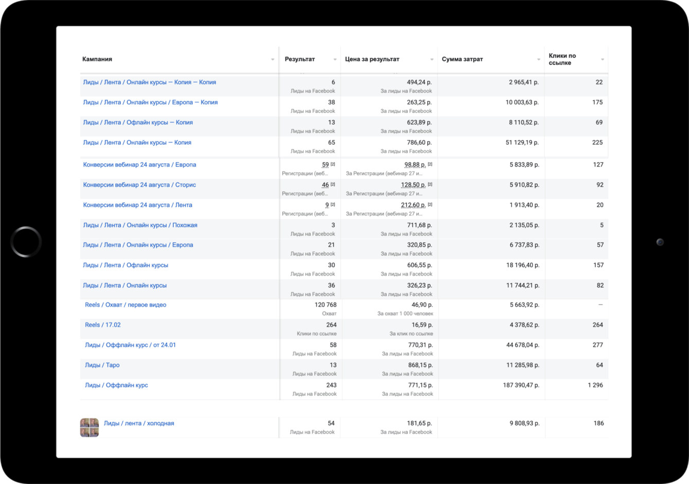 Ниже представлена статистика из рекламного кабинета: