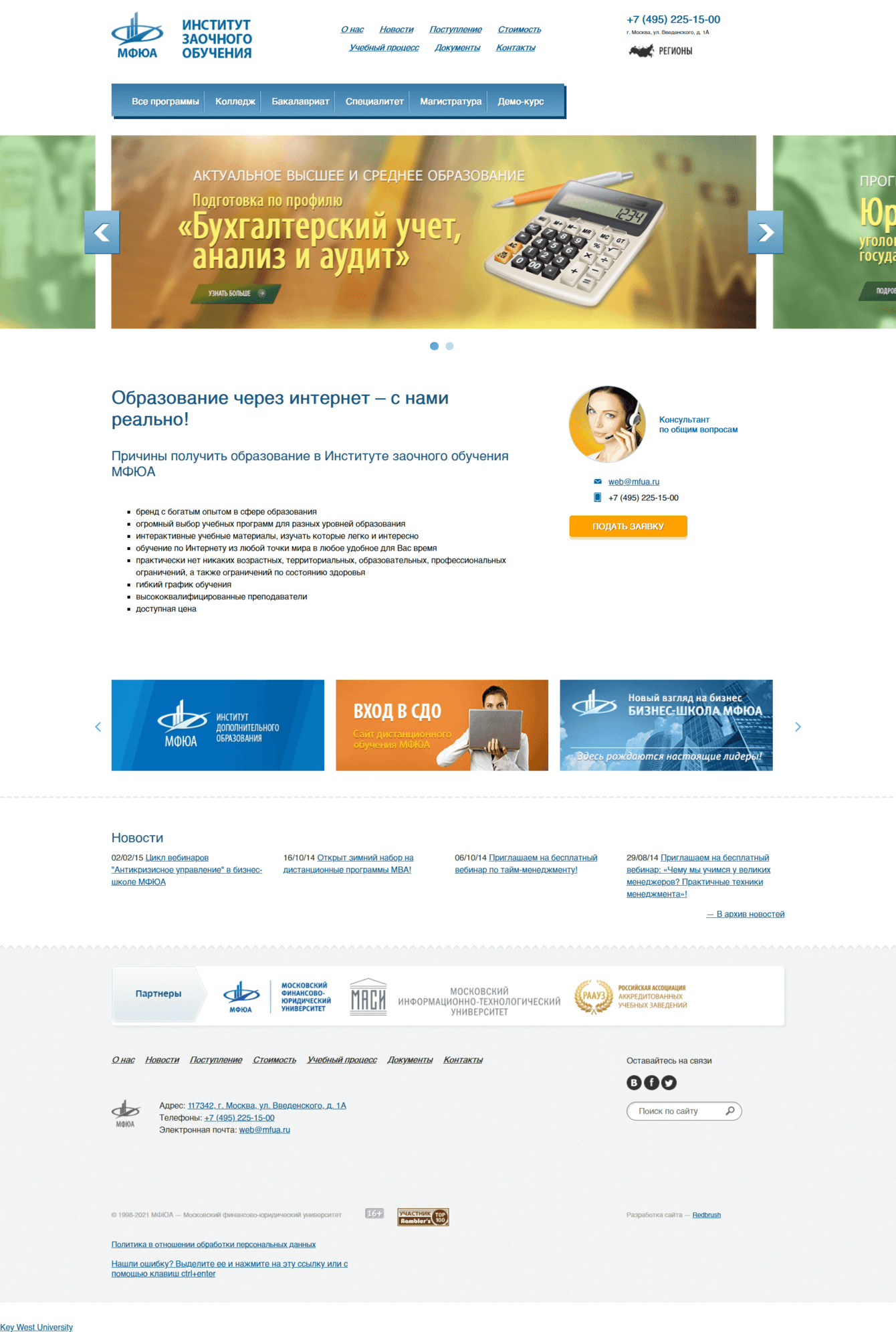 Разработан сайт Института заочного обучения - закрывающий отдельную задачу МФЮА.