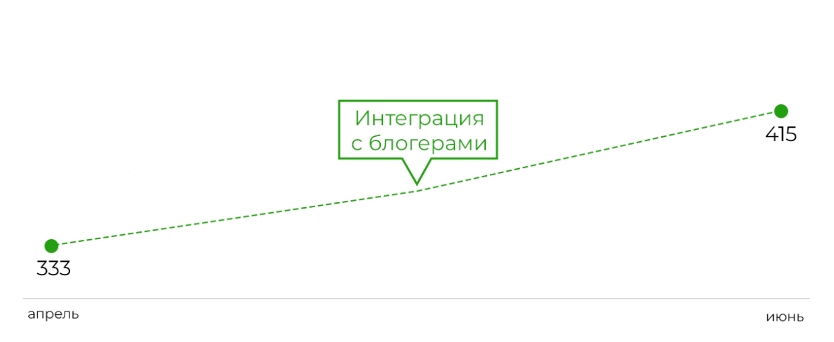 Благодаря проведенной работе с блогерами нам удалось повысить интерес пользователей, о чем говорит рост органического трафика по данным Вордстат за период с апреля по июнь по брендовому запросу препарата.