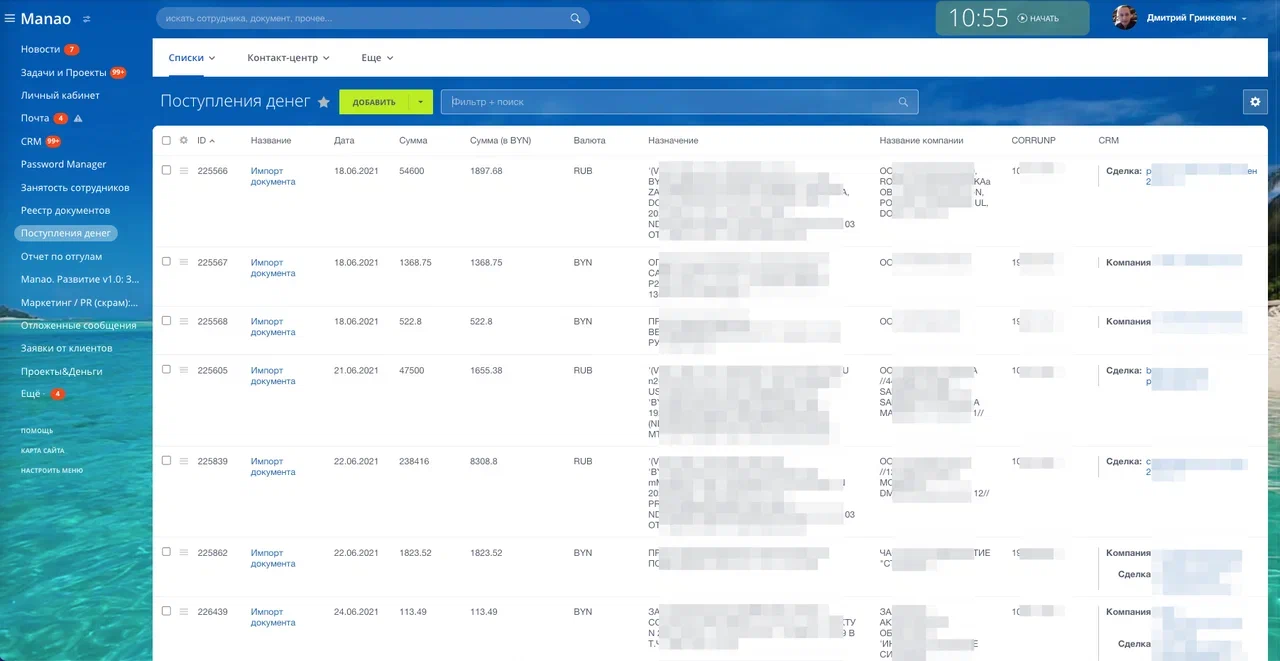 2) Автоматическое сопоставление платежей: система связывает платежи с соответствующими компаниями и сделками в CRM, используя уникальный номер плательщика (УНП) или производя сравнение с уже существующими транзакциями.