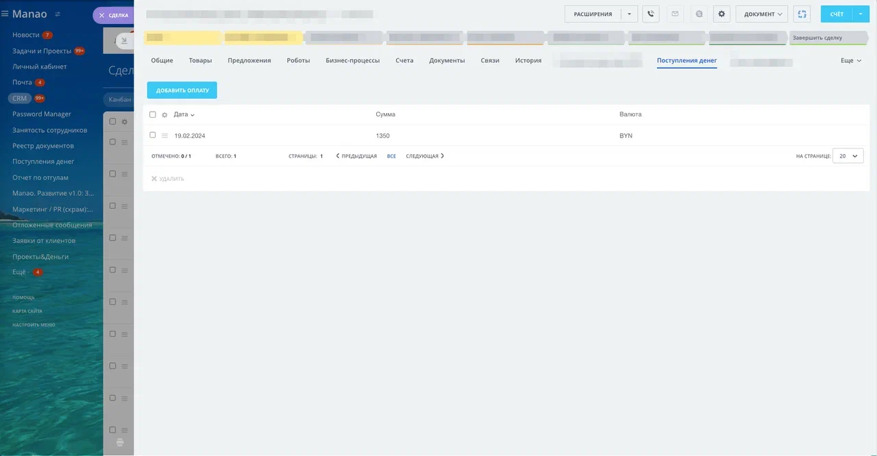 2) Автоматическое сопоставление платежей: система связывает платежи с соответствующими компаниями и сделками в CRM, используя уникальный номер плательщика (УНП) или производя сравнение с уже существующими транзакциями.