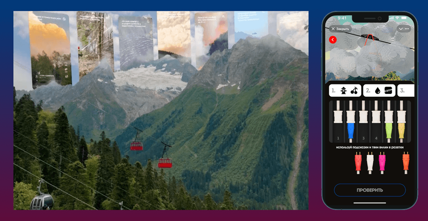 — Канатная дорога. Пользователям нужно было разгадать графический шифр и соединить провода в правильной последовательности, чтобы починить кабину на высоте. Эта игра стала самой популярной — ее запустили более 1 миллиона раз.