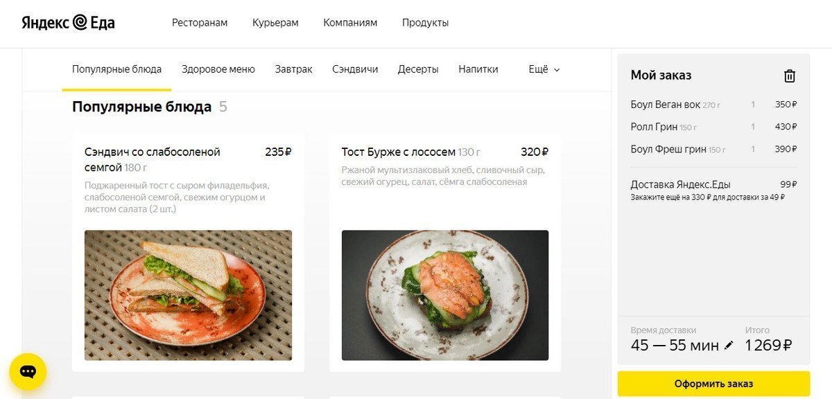 Мы сделали сайт с корзиной в правой части экрана – как у Яндекс.Доставки.