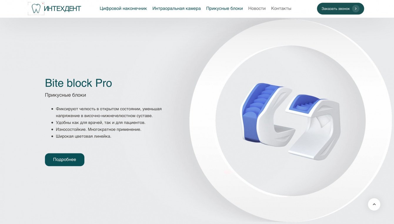 Тем не менее, в портфолио на нашем сайте сохранена первая версия сайта с 3D моделями: https://intechdent.m360.digital