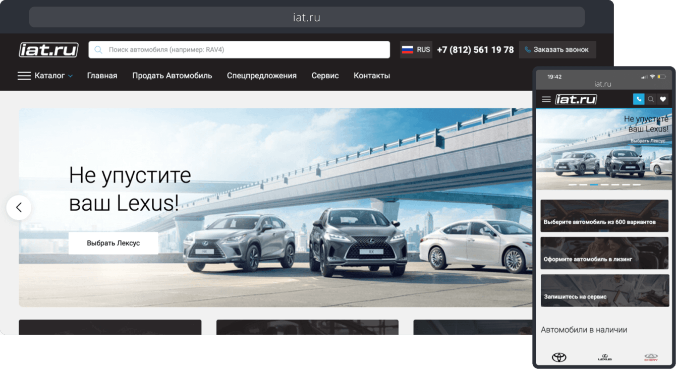 Для того чтобы у сайта была хорошая конверсия, необходимо предусмотреть различные призывы к действию для каждого сегмента целевой аудитории. Так, на странице автомобиля клиент может не только отправить запрос на покупку авто, но и скачать презентацию в PDF, которую сайт автоматически генерирует, отправить запрос на покупку в Трейд-ин, в кредит или просто добавить автомобиль в Избранное.