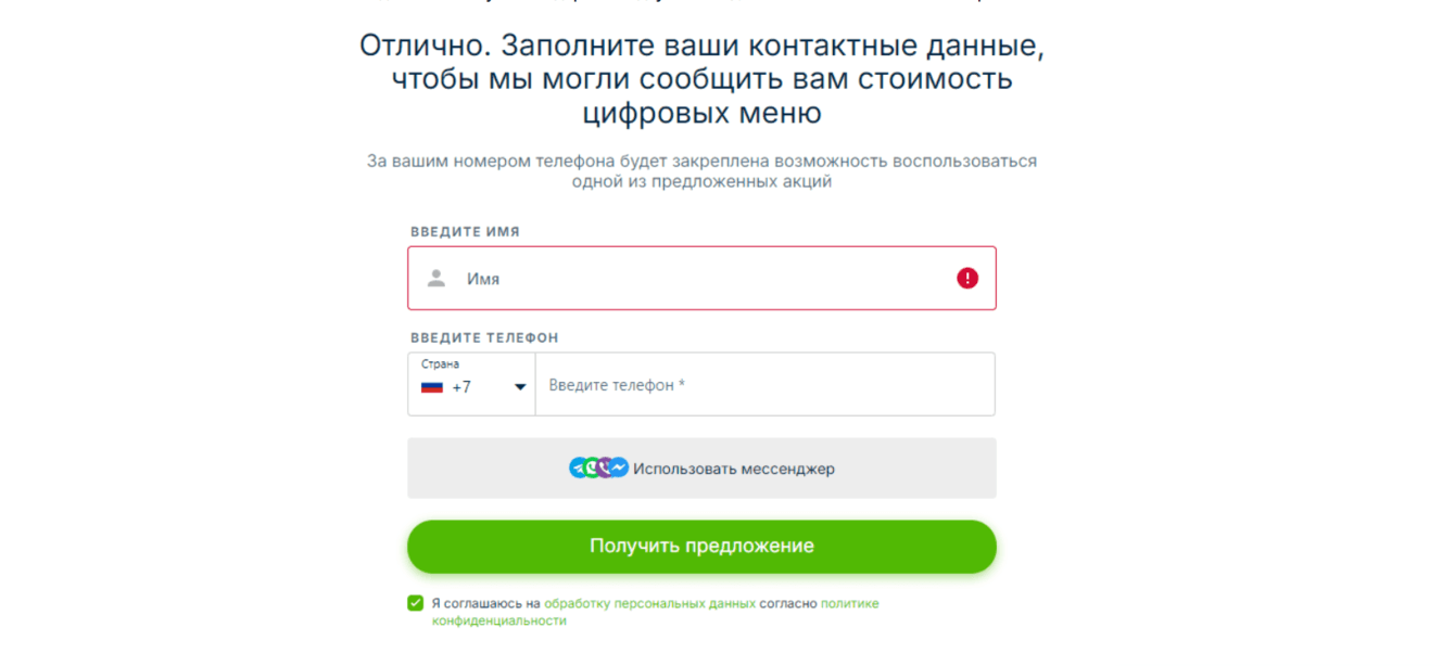 Интерактивный квиз по меню-бордам призван помочь потенциальному клиенту рассчитать стоимость меню-борда под его конкретные вводные.