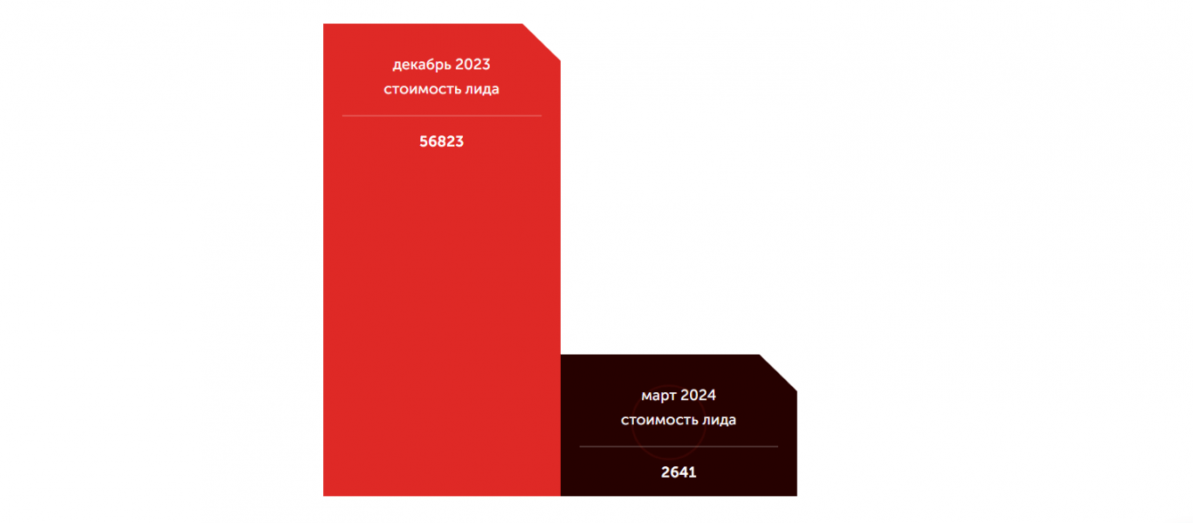 В нише цифровых решений лид стоит в среднем 10 000 руб. Нам удалось снизить его стоимость на 95 % — с огромной суммы 56 823 руб. до 2641 руб.