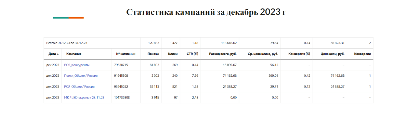 - Расходы на кампании составили 113 646,62 руб с НДС.