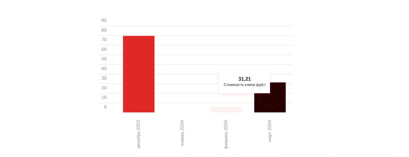 Цена за один клик снизилась — на 60 % с 79, 64 до 31,21 руб.