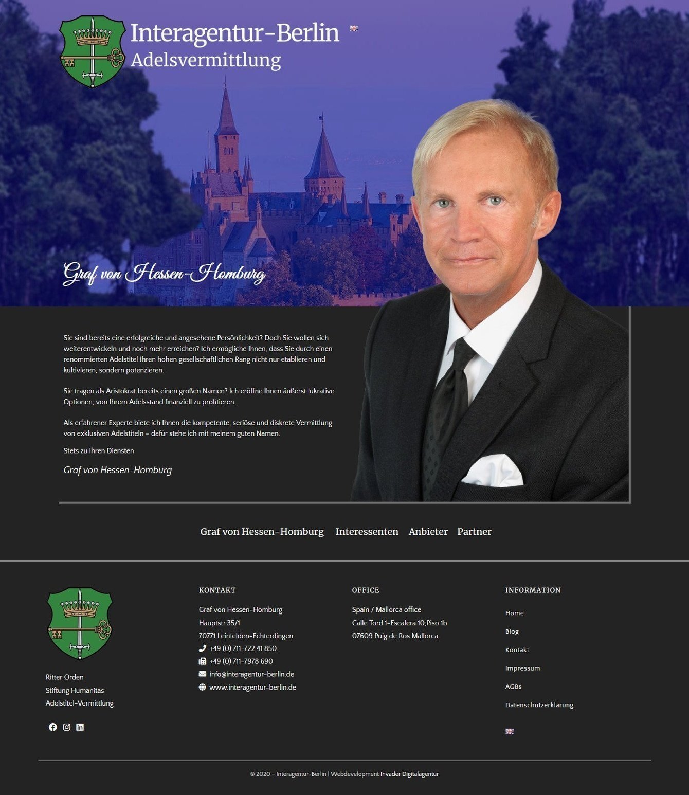 Немецкая организация Interagentur-Berlin занимается предоставлением титулов высшего общества и организацией формальностей, связанных с этим процессом.