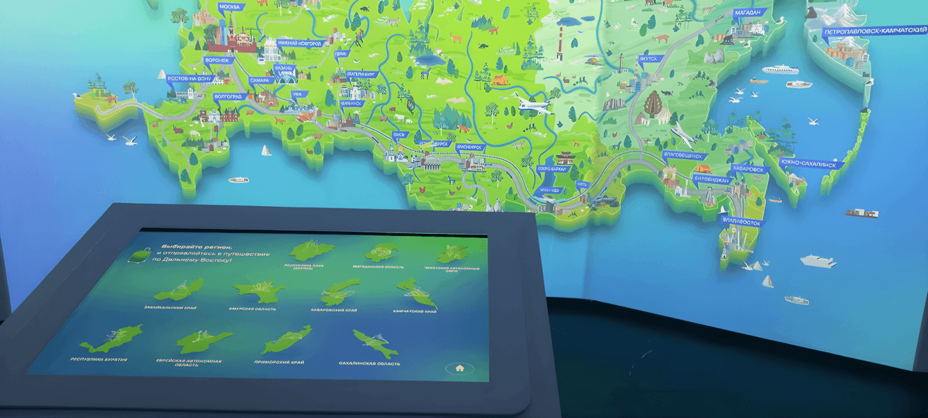 В рамках решения задачи была создана интерактивная инсталляция показывающая возможности туризма и инвестиции в туризм в Приморском крае.