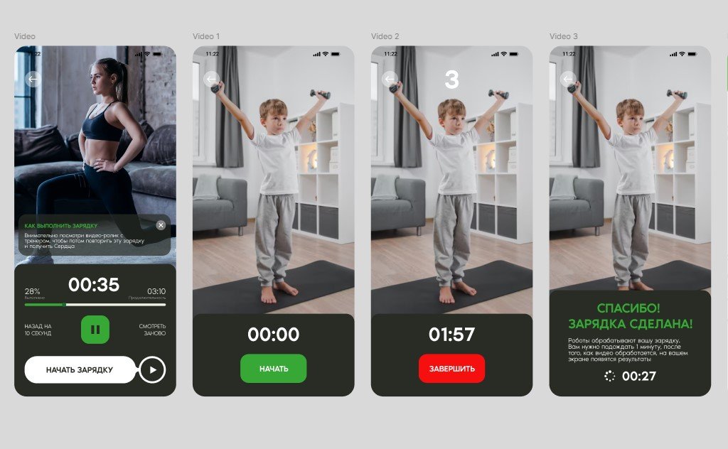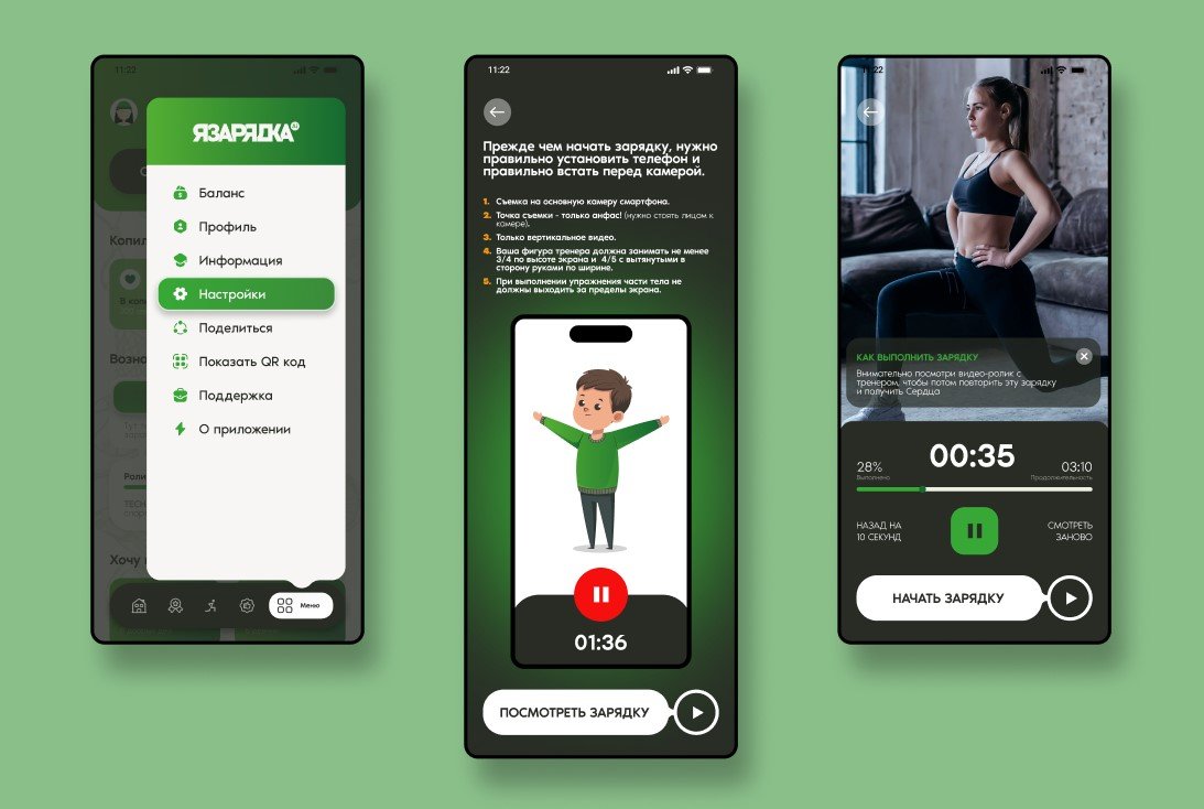 — Искусственный интеллект анализирует выполнение упражнений через камеру (CV) и дает подсказки, корректирует правильность выполнения зарядки.