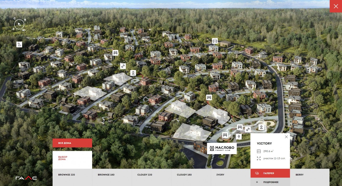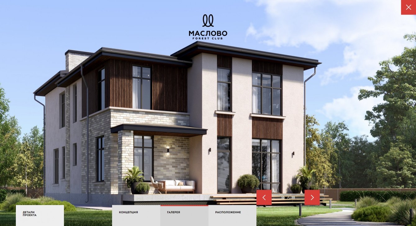 Разработать интерактивную презентацию для офиса продаж коттеджного посёлка «МАСЛОВО FOREST CLUB» от ГАЛС-Девелопмент.