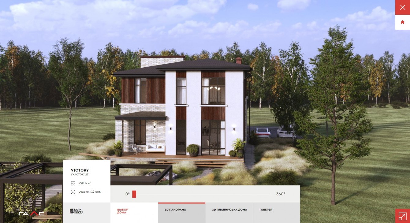 – панорама 360 градусов (осмотр со всех сторон каждого проекта)