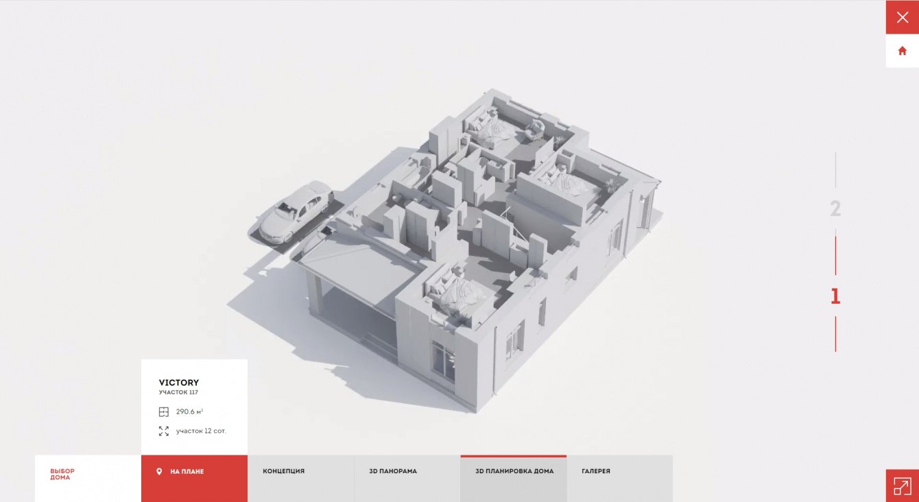 Командой ART3D были разработаны продающие 3D-визуализации (день, вечер, зима и осень) 7-ми типов домов: Brownie 220, Brownie 180, Cloudy 220, Cloudy 180, Ivory, Victory, Berry.