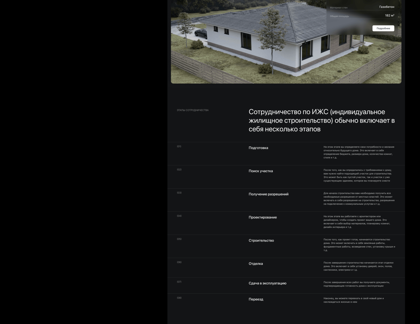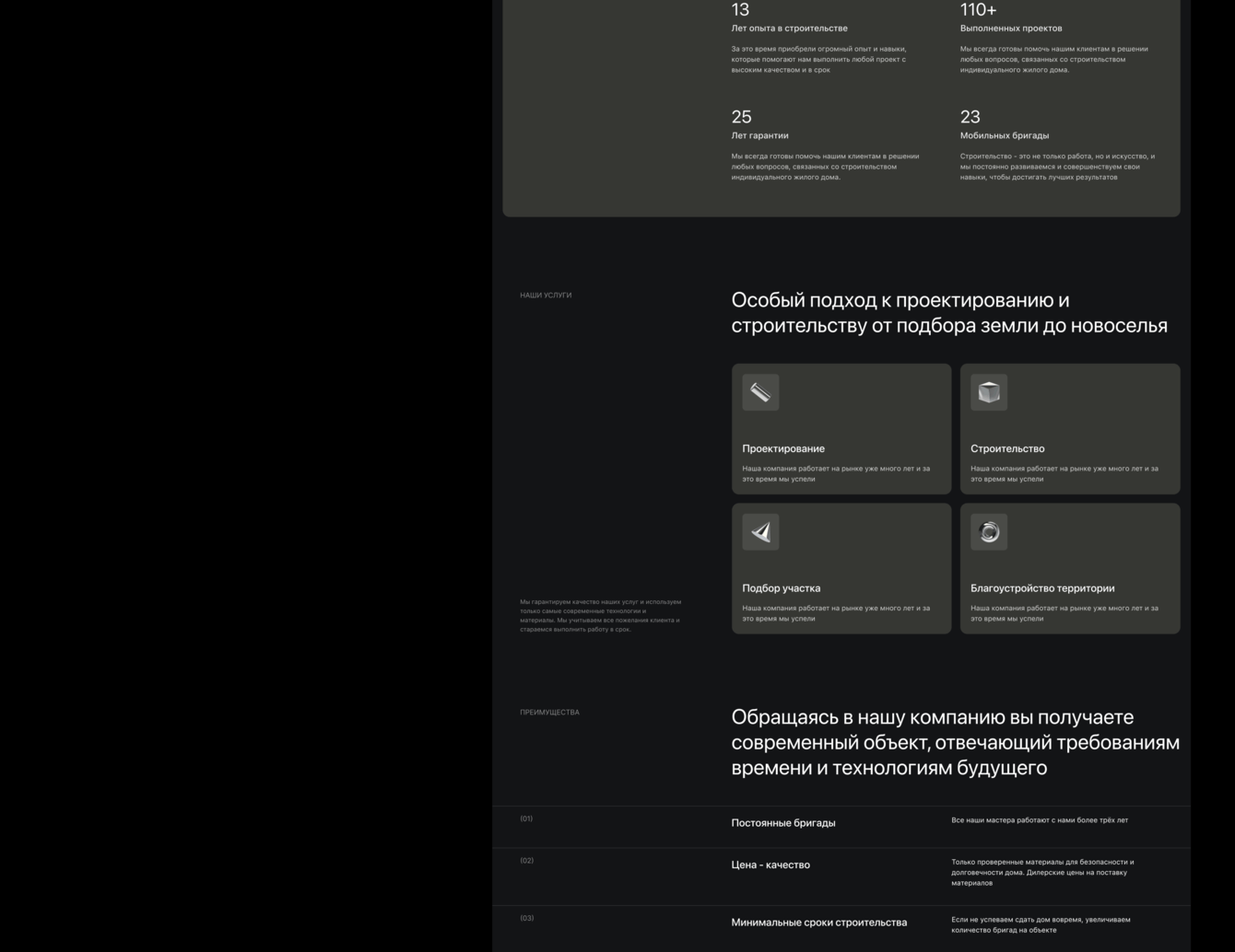 Переосмыслить визуальный стиль и сайт компании. Старый сайт выглядел устаревшим, слабо отражал уровень доверия и качества услуг. Нужно было создать актуальный бренд, который будет внушать уверенность частному застройщику и выделяться среди конкурентов.