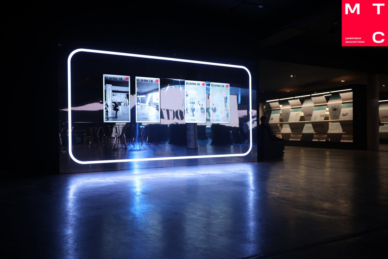 Студия создала контент для двух мультимедийных инсталляций, посвященных партнерству Ведомостей и МТС. В инсталляциях мы создали визуальный диалог между технологиями будущего и печатной традицией, сохранив айдентику обоих брендов. Графика сочетала цифровые элементы и классические газетные мотивы.