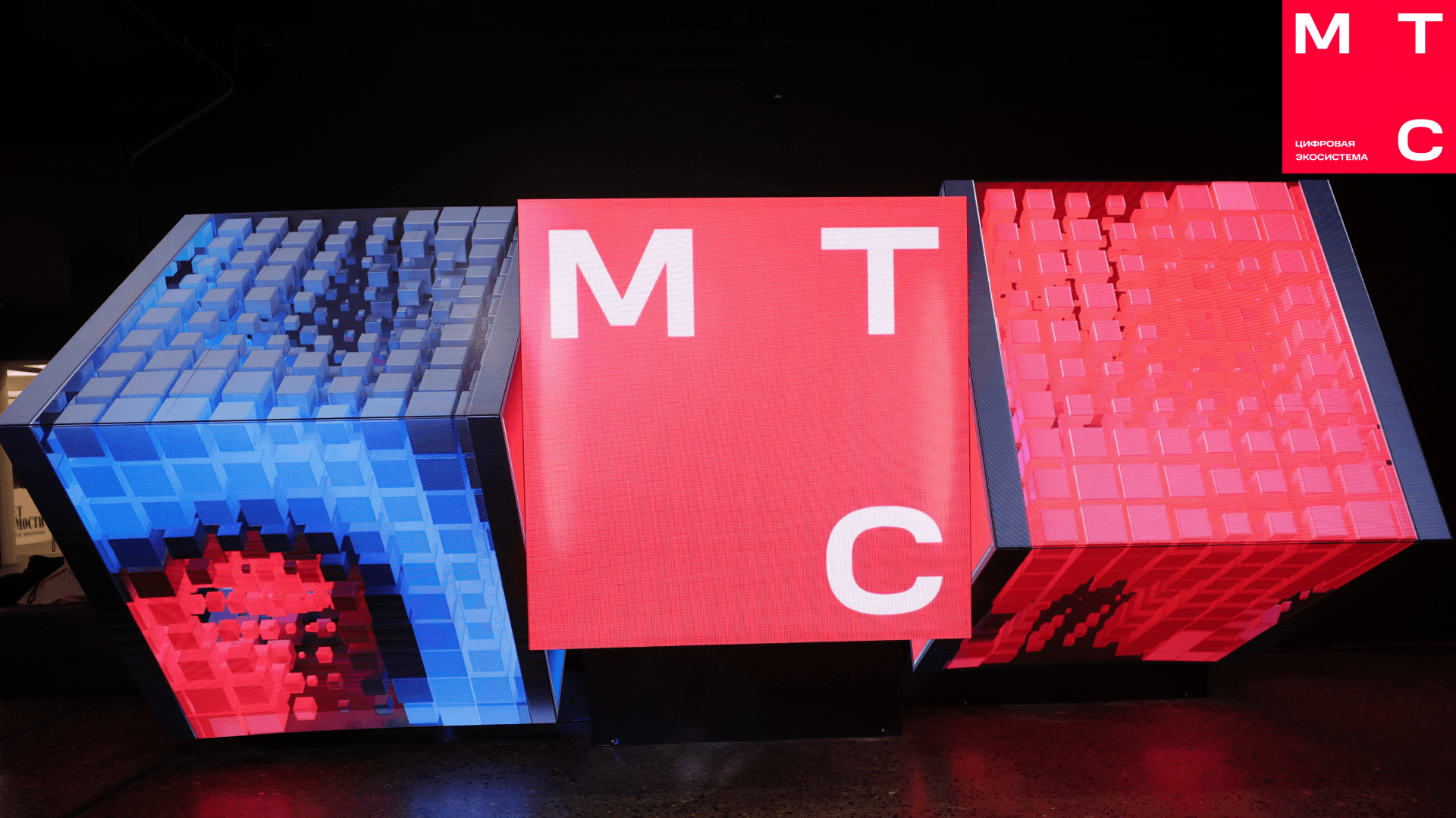 Первый ролик рассказывал о продуктах экосистемы МТС, задачей было сделать его одновременно информативным и увлекательным. Мы наполнили боковые кубы абстрактными объектами в айдентике бренда, которые хаотично летали в полом пространстве куба, постоянно соприкасаясь – так мы показали экосистемность всех продуктов бренда. Левитирующие формы также создавали очень динамичную картинку, которая отражала репутацию МТС как компании, находящейся в постоянном движении. В центральной части инсталляции отображался перечень продуктов экосистемы. Такая композиция позволила как рассказать об услугах бренда, так и запомниться гостям мероприятия необычными визуалами.