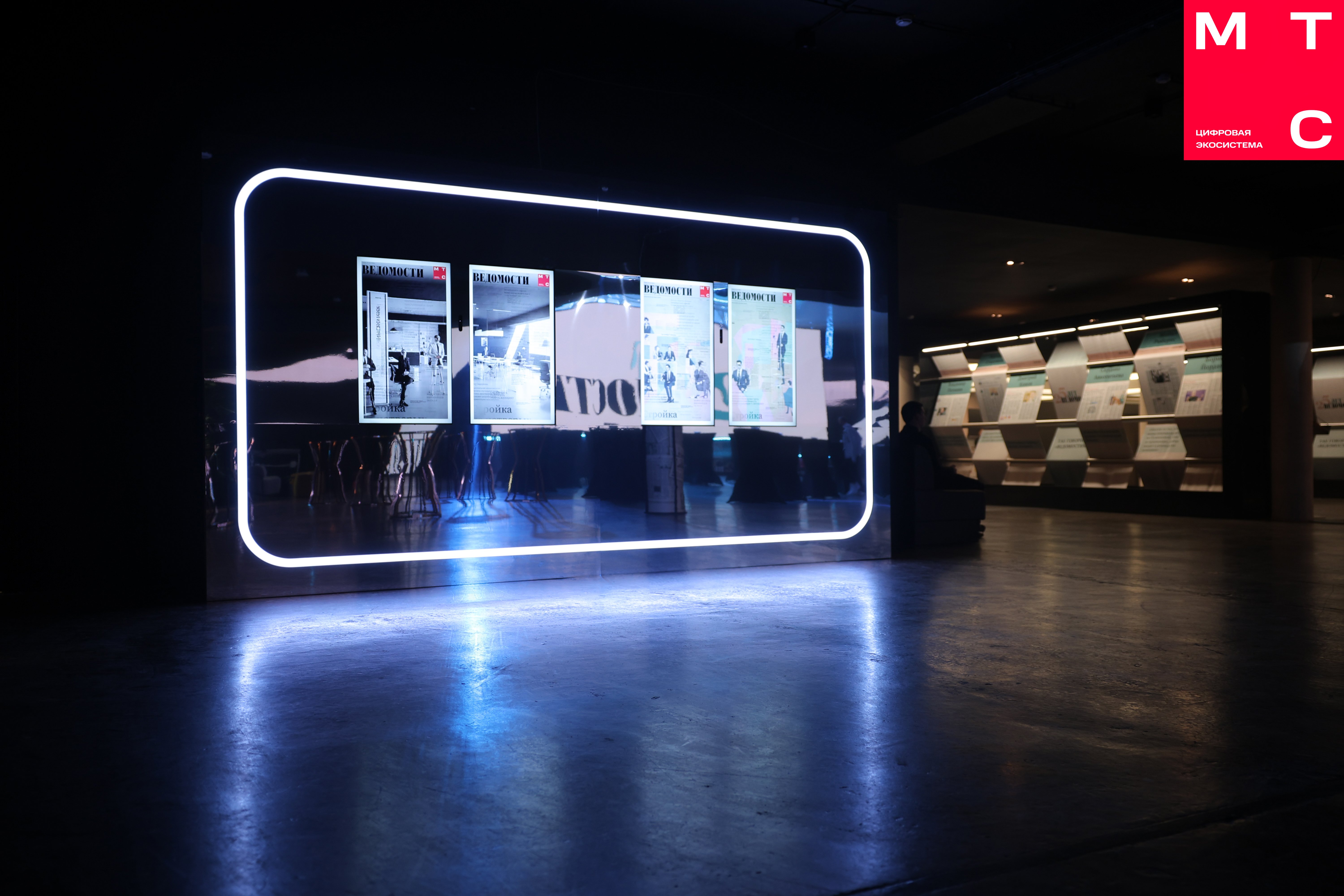 Студия создала контент для двух мультимедийных инсталляций, посвященных партнерству Ведомостей и МТС. В инсталляциях мы создали визуальный диалог между технологиями будущего и печатной традицией, сохранив айдентику обоих брендов. Графика сочетала цифровые элементы и классические газетные мотивы.