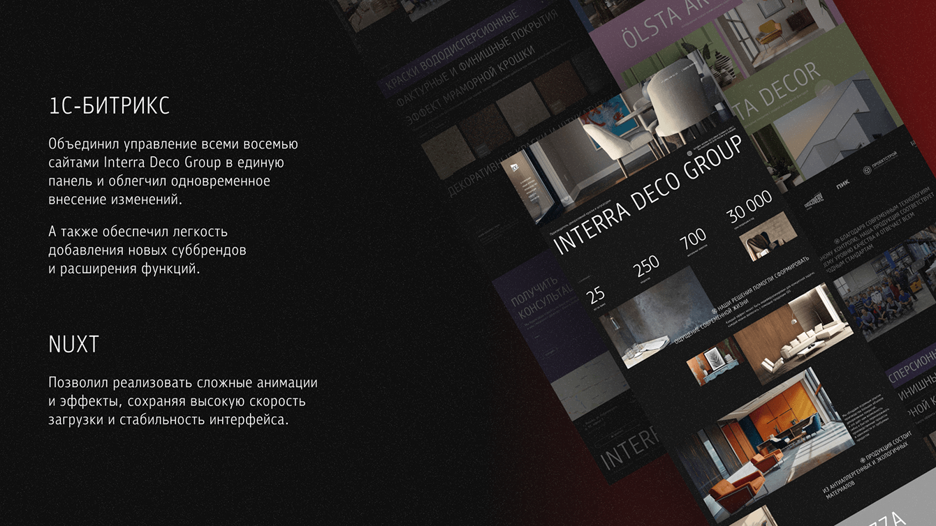 Перед нами стояла задача создания новой онлайн-платформы для Interra Deco Group, которая: