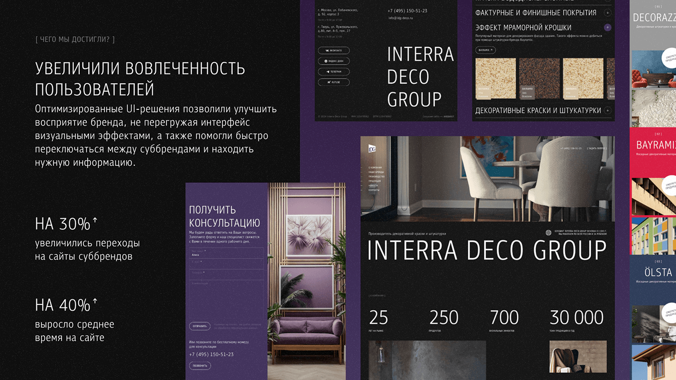 Новый сайт Interra Deco Group положительно изменил взаимодействие с брендом: