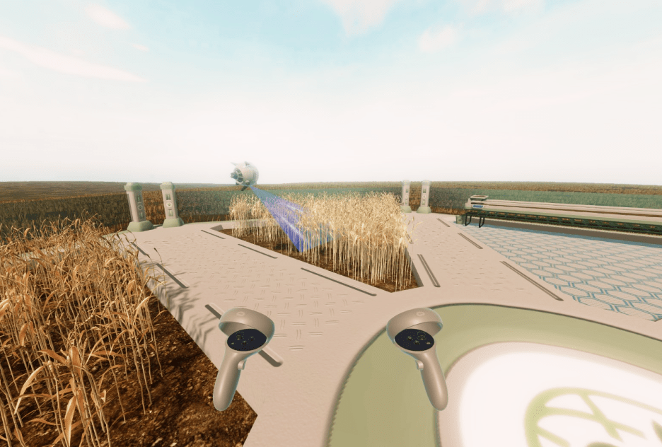 Надев VR-очки, пользователь переносится на футуристичную площадку, окруженную полями агрокультур. По ходу путешествия его сопровождает дрон-помощник, который объясняет происходящее с помощью наглядных схем и иллюстраций.