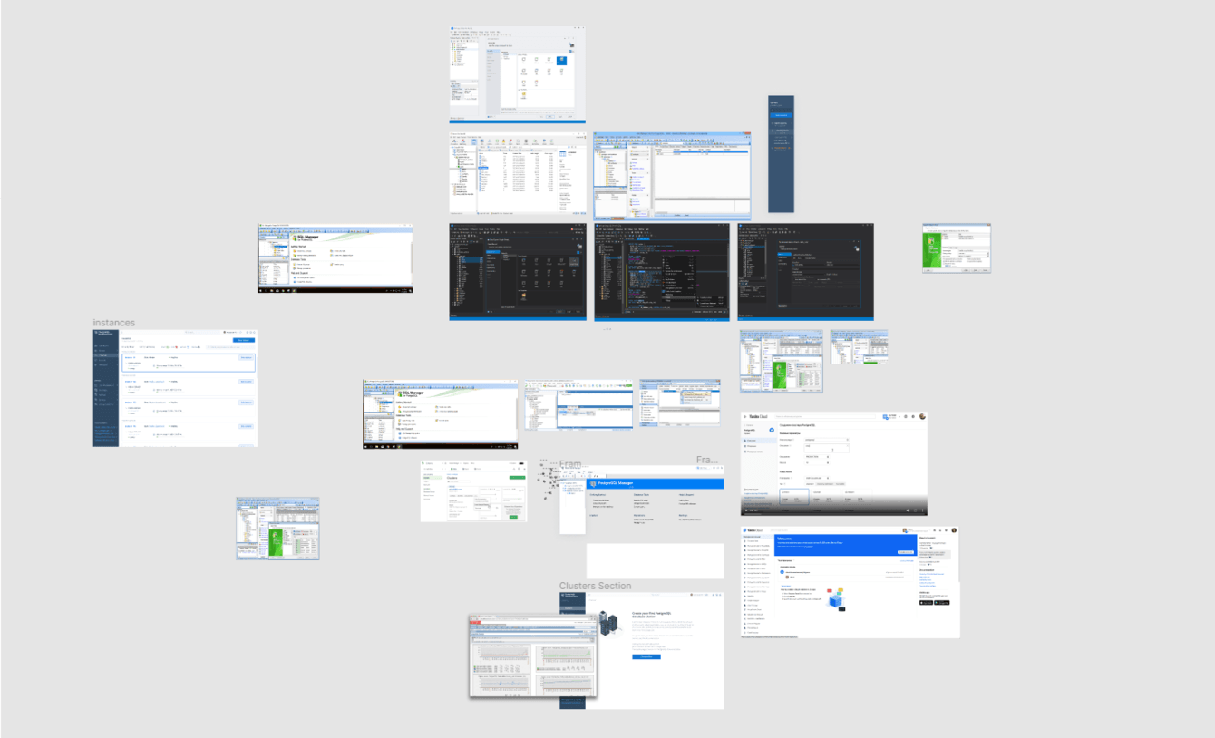 Аналогичных продуктов на рынке практически не представлено. Прямых референсов почти не было. Были похожие сервисы для других БД, но без поддержки расширений. Они не покрывали весь функционал, который нам нужно было реализовать. Поэтому этап аналитики был критично важен.