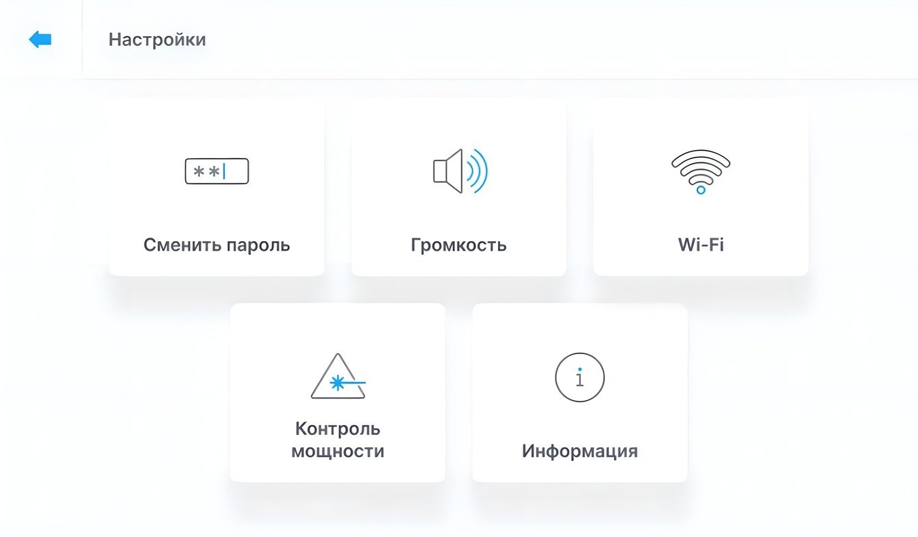 Заказчик выбрал вторую концепцию для реализации. Опираясь на нее, мы доработали настройку лазера и создали другие экраны.