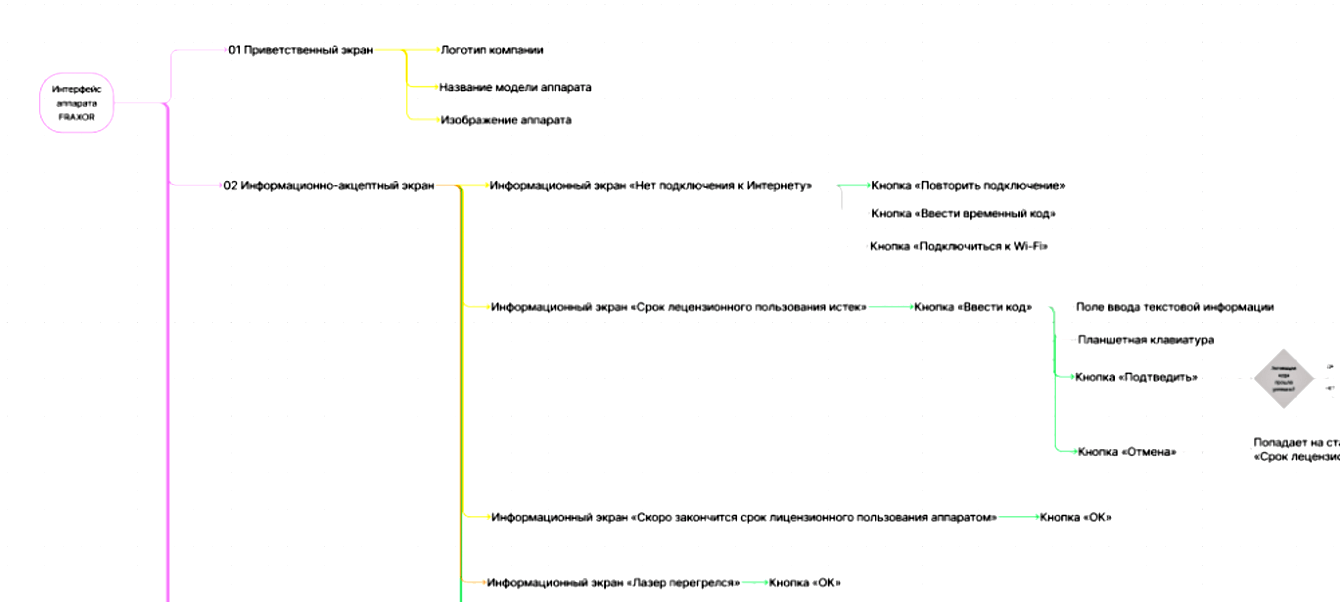 Чтобы дизайнеру было удобнее разрабатывать макеты и синхронизироваться с заказчиком по наполнению будущих экранов, мы создали информационную структуру аппаратного ПО.