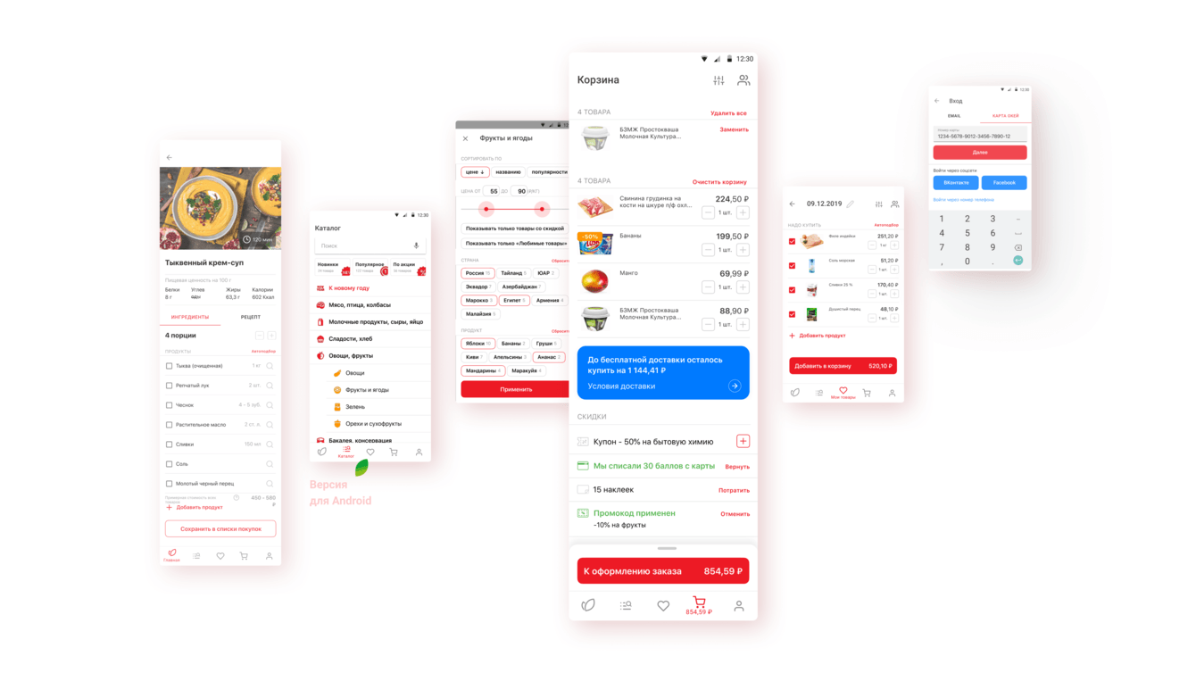 По мере развития компании, приложение так же активно развивалось, в него добавлялись новые функции и фичи. Для того, чтобы обеспечить удобство интерфейсов на фоне активного развития, было принято решение создать новое мобильное приложение, которое позволит не только заказывать продукты online, но и даст возможность клиентам гипермаркетов получать актуальную информацию об акциях, бонусах, регистрироваться в программе лояльности, выпускать виртуальную карту лояльности и т.д.